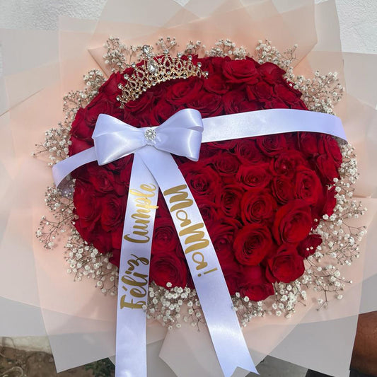 Ramo de Rosas "Feliz Cumpleaños, Mi Reina" con Chocolates