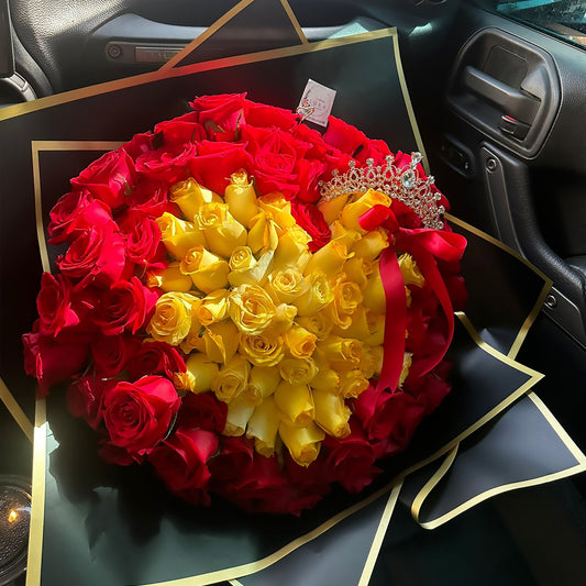 Ramo de 100 Rosas con Corazón Amarillo y Corona